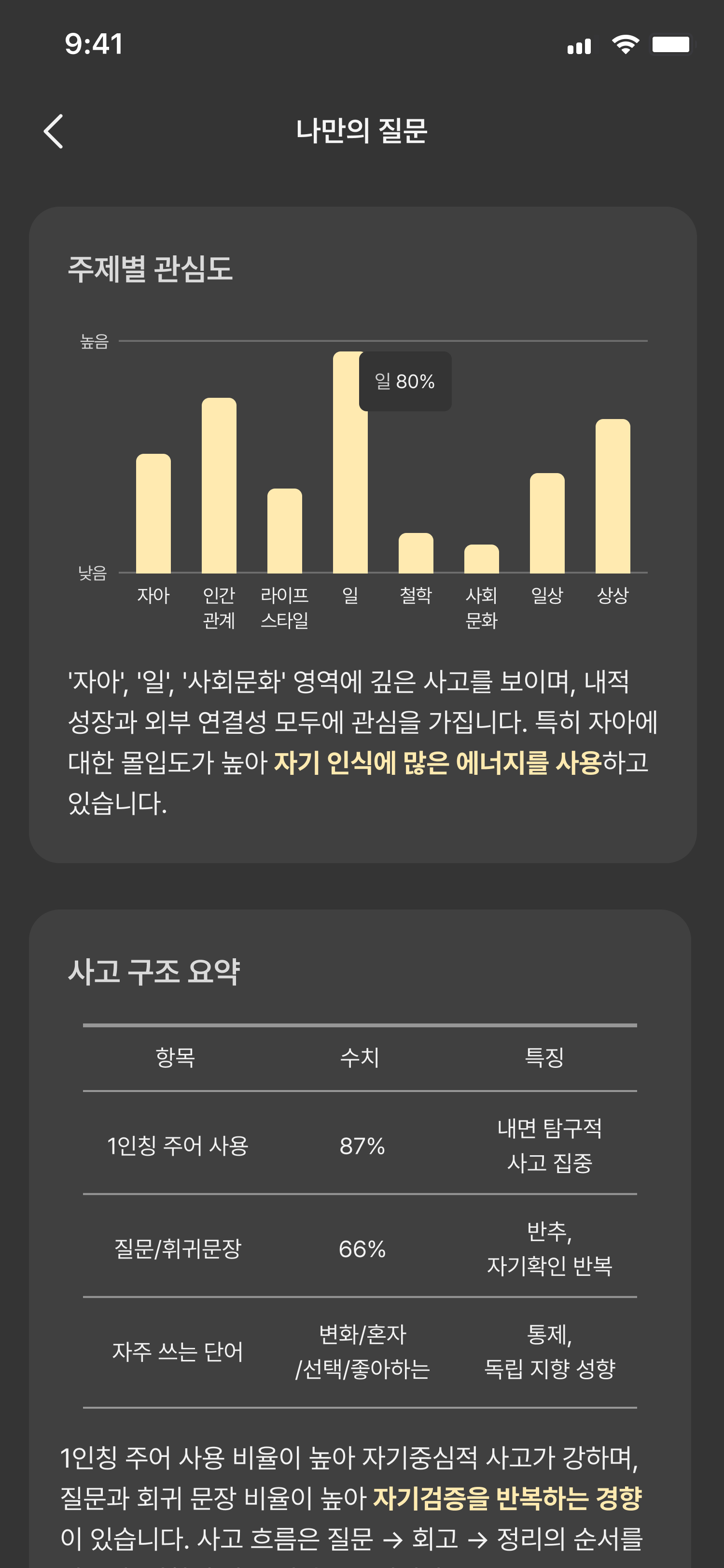사고 구조와 감정 패턴을 한눈에